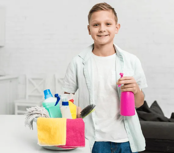 Our standard service covers dusting, vacuuming, mopping, kitchen surfaces, and bathroom sanitation.